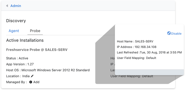 Identify all the assets used within your organization using the Discovery Agent to manage computers, and Discovery Probe to scan for all assets within your network.