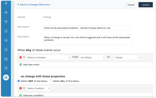 Define your own trigger rules with Scenario Automation and Observer to perform tasks and actions as necessary across modules – be it incident, problem, change, or release.