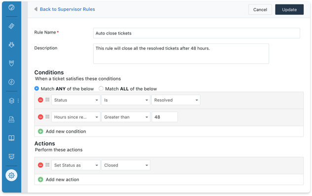 With Supervisor, an automation feature, create your own set of rules to monitor all the tickets in the service desk.