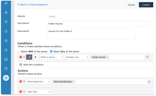 Automate agent assignment for requests and create your own approval workflows to fulfil requests on time.