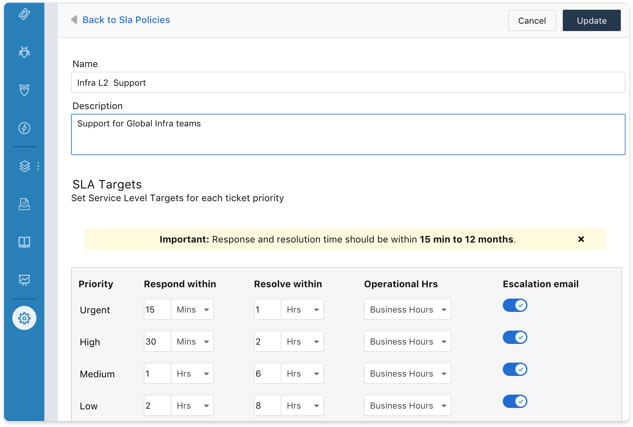 Create multiple SLA policies to align to your team’s needs, and set expectations about your service delivery to employees.