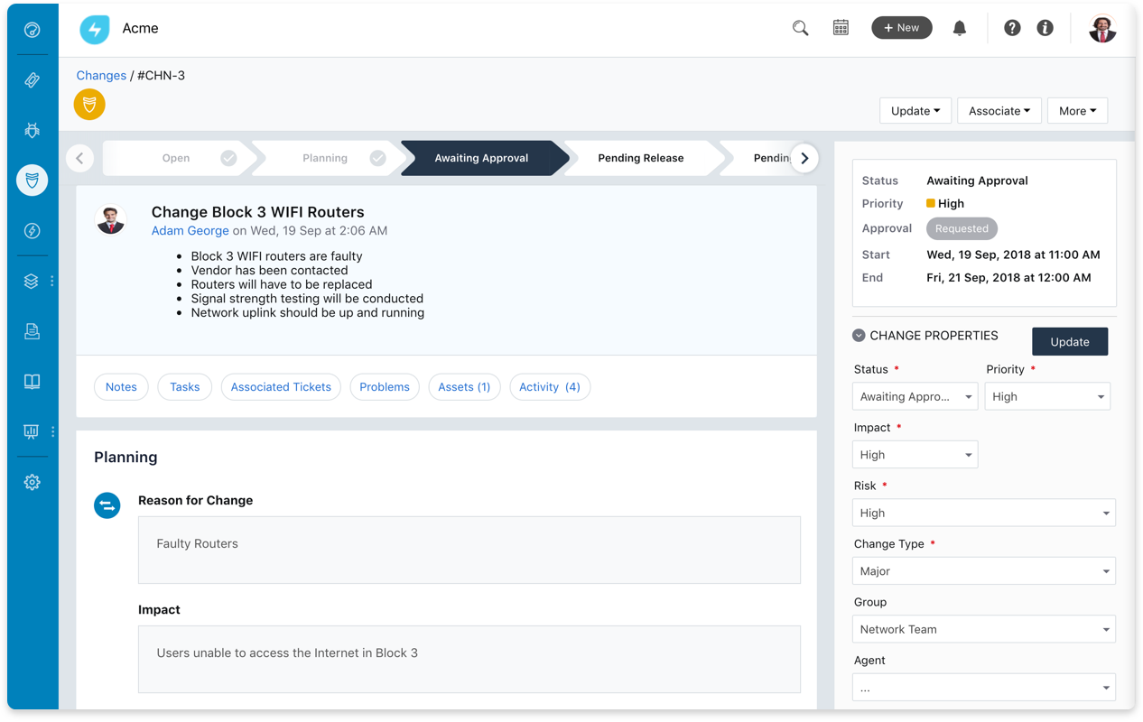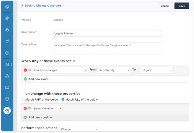Automate change approvals and notifications to agents and end-users alike about any event related to a change.
