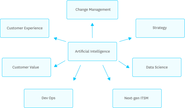AI can be implemented in ITIL modules such as incident management, service request management, change management etc. to automate routine activities. Before implementing these use cases, it is recommended to understand the inhibitors and drivers of AI as mentioned above. AI technologies interact mainly with three actors such as